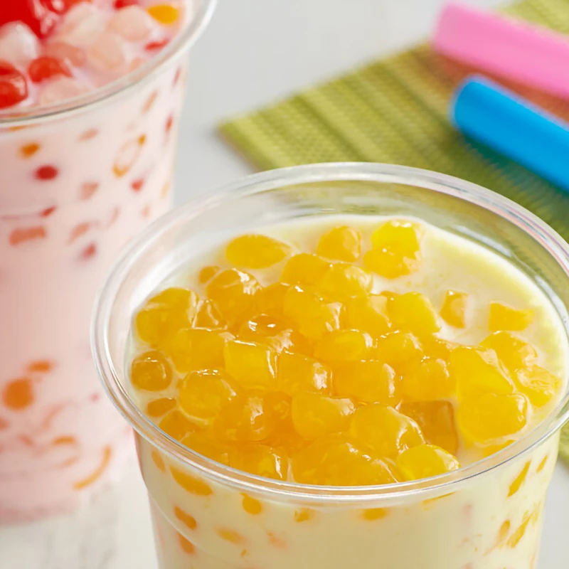 Add a vibrant, tropical element to your offerings with our mango jelly balls. Their bright color and refreshing flavor make them particularly suited for fruit-based teas and seasonal promotions.